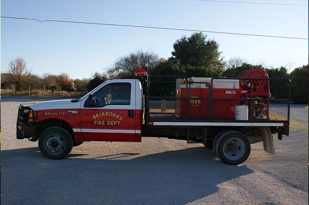 The Briaroaks Fire Department currently operates three class “A” Fire Engines, two Brush trucks, two Squad rescue vehicles, one Incident Command/Support vehicle, and one Hazardous Materials / Air Support Trailer. Engine 373 is an older unit that is used as a reserve Engine and a water tanker due to its 1500 gallon water tank.